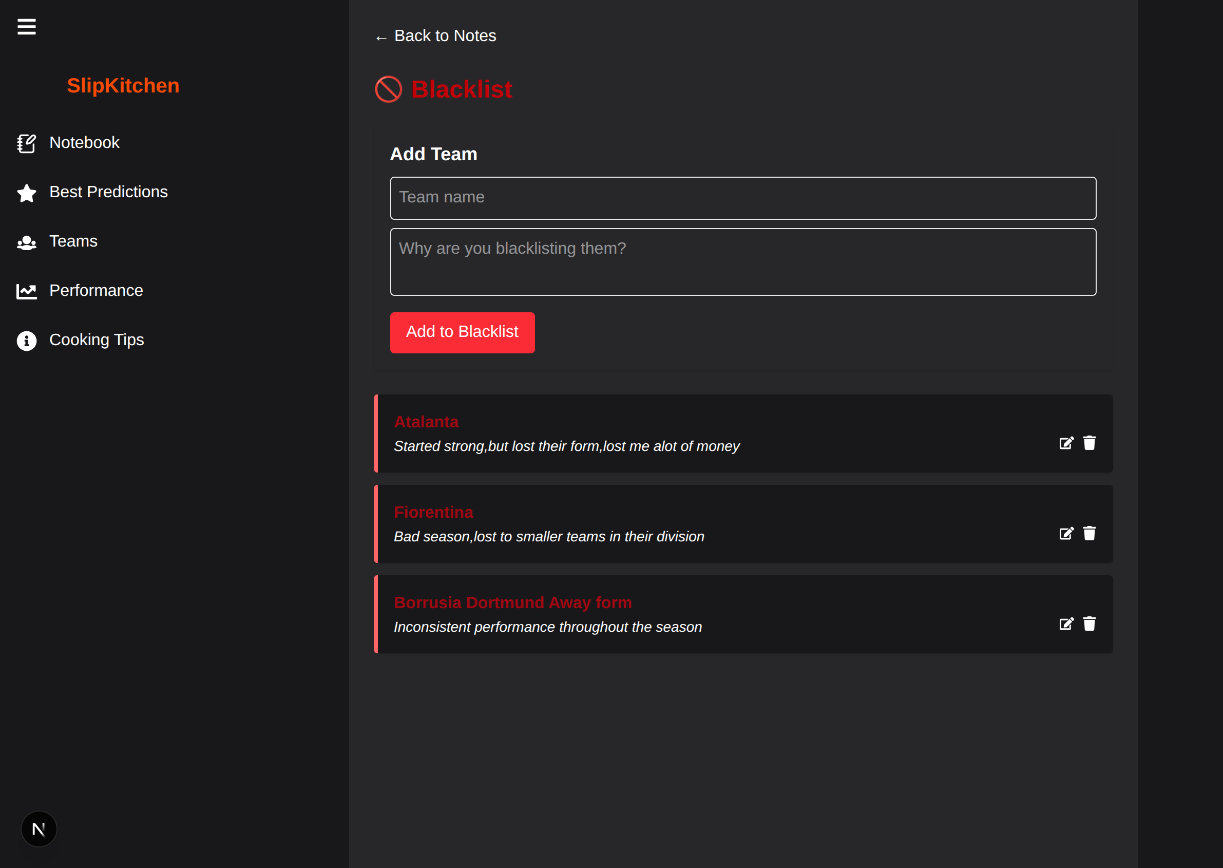 Blacklist teams that burn you and get alerts when they show up in your slips.