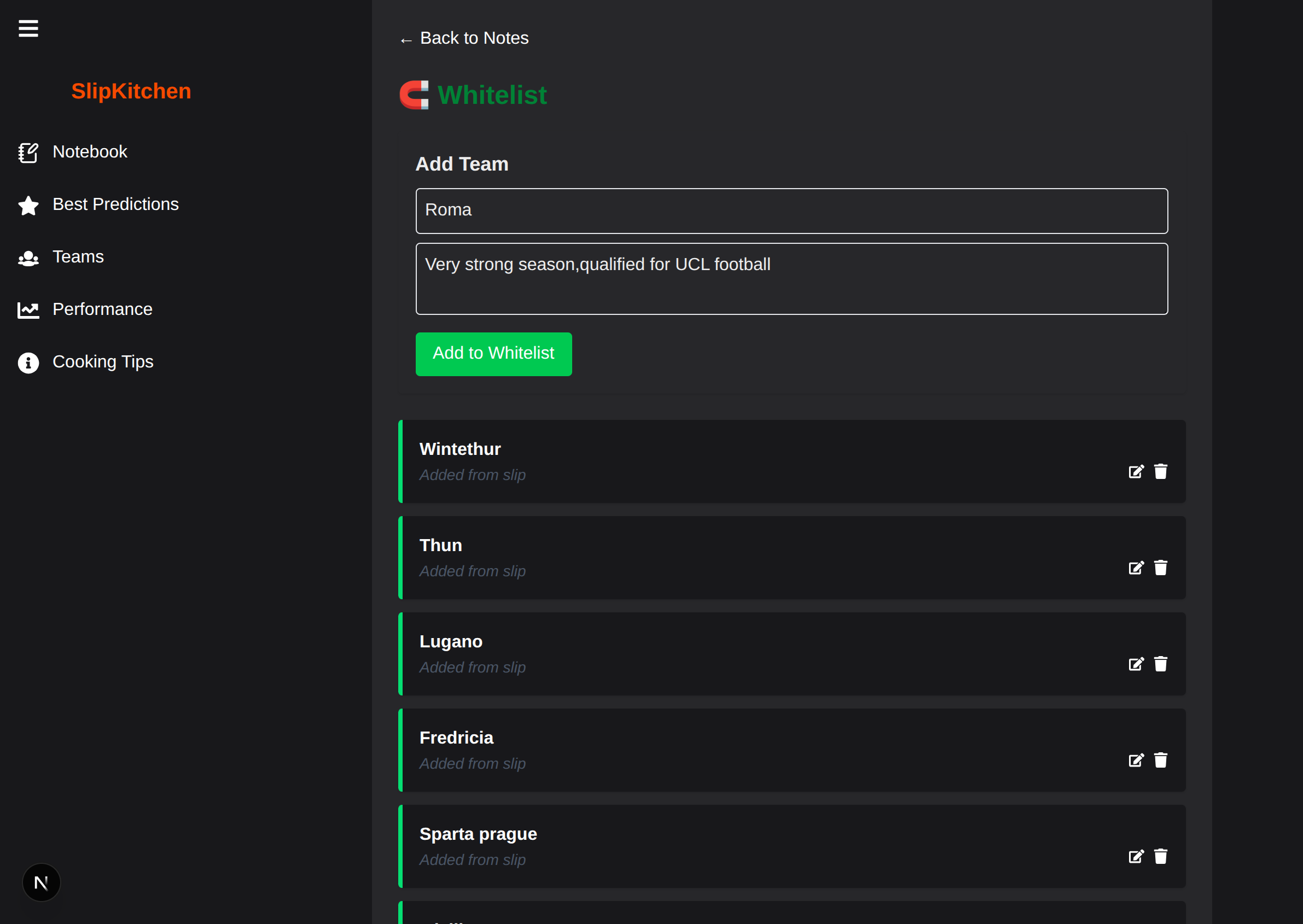 Whitelist your most reliable teams and prediction types to build on what works.